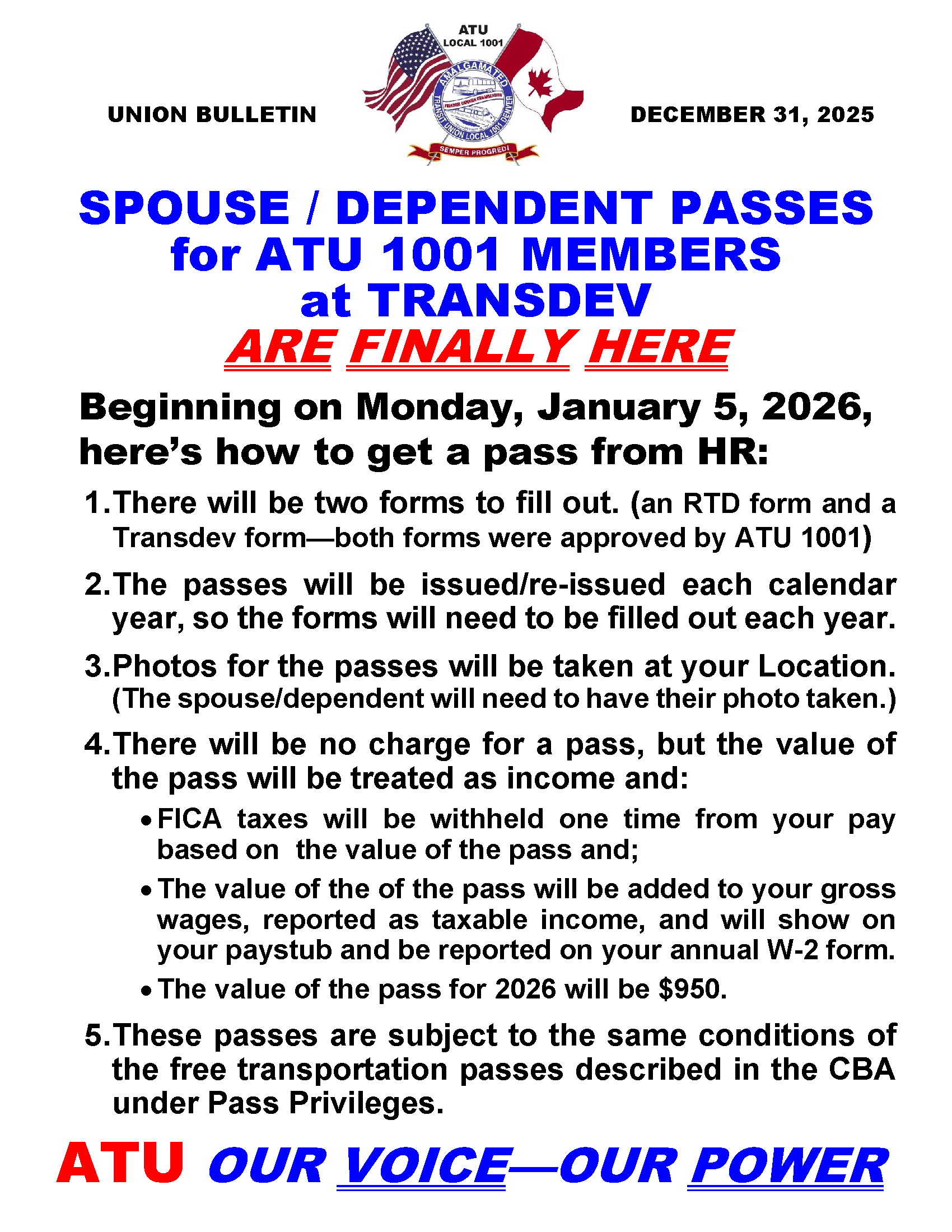 TRANSDEV SPOUSE/DEPENDENT PASSES